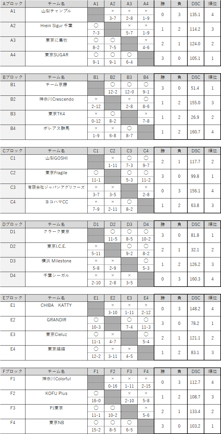 予選の結果と決勝Tの組み合わせはFacebookをご参照ください。