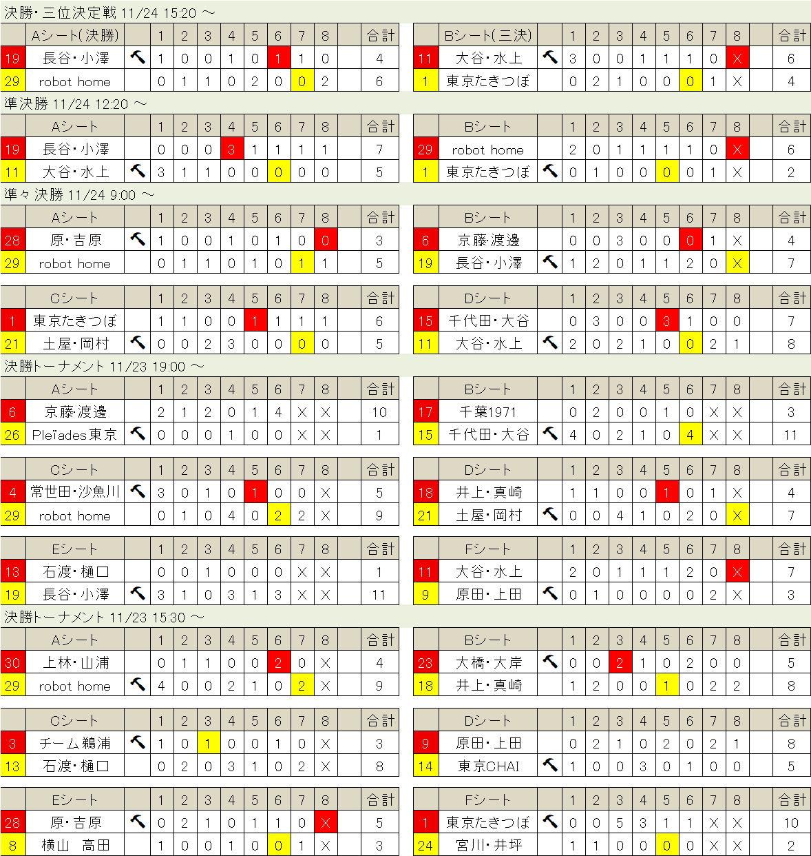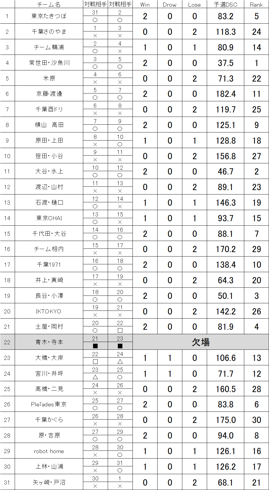 予選の結果と決勝Tの組み合わせはFacebookをご参照ください。